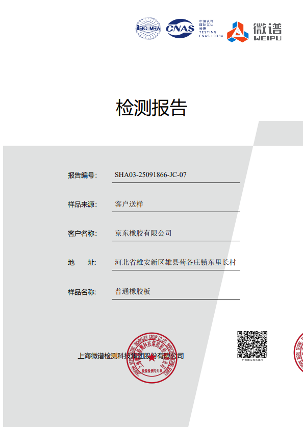 京東橡膠普通橡膠板檢測報告